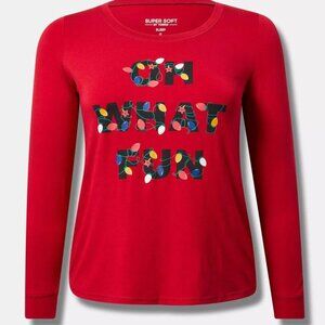 Torrid Tee 1X Top Shirt Sleep Red Christmas "Oh What Fun Holiday Lounge Crew NWT