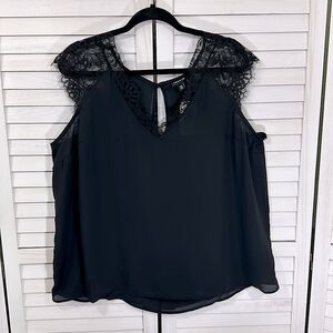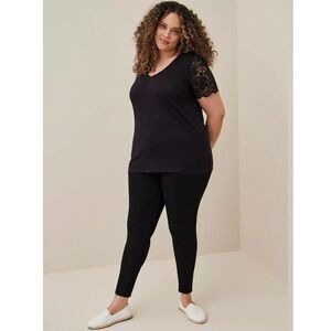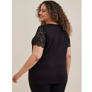 Torrid Tee Size 00 (10) Black V Neck Lace Sleeves NWT