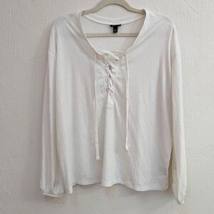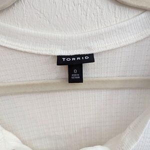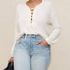 Torrid Texture Jersey Lace-Up Drop Shoulder Cream Shirt Size 0
