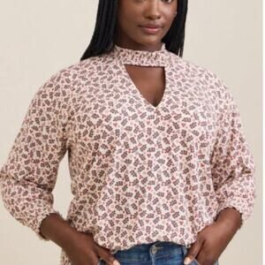 Torrid Textured Jersey Choker Neck Smocked Bottom Top