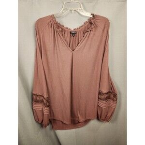 Torrid Textured Jersey V-Neck Crochet Long Sleeve Top Rose Taupe 3X Boho Peasant