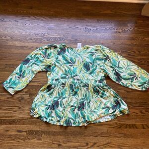 Torrid Textured Knit Surplice Puff Sleeve Babydoll Top 4 boho tropical NWT