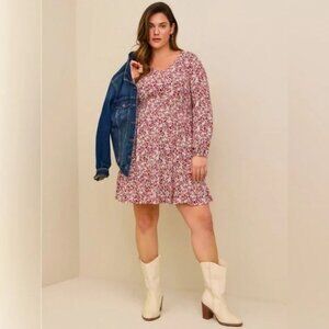 Torrid | Textured Stretch Rayon Western Long Sleeve Skater Dress | 3X (22-24)