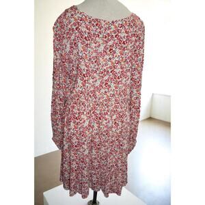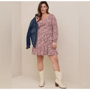 Flowy and flattering, this Torrid mini dress is perfect for warm days and transitional layering. It features a soft red-orange floral ditsy print on a cream background, a babydoll silhouette, long sleeves, and a V-neckline. Style it with sandals, boots, or layered with a denim jacket for that effortless boho look.