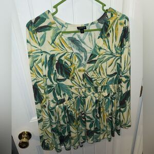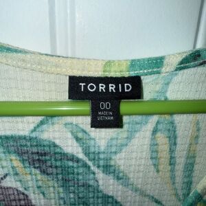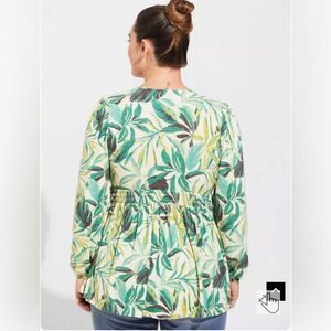 Torrid Blouse Pretty botanical pattern Smocked waist EUC Size 00 Cat friendly house