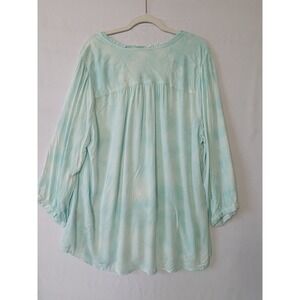 Torrid Tie-Neck Tunic Top Blouse Tie Dye Long Sleeve Aqua Green Plus Size 2X New