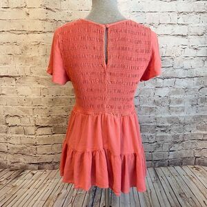 Torrid Tiered Coral Orange Blouse Short Sleeve Bubble Stretchy Rayon Flowy 1