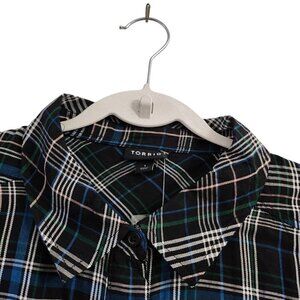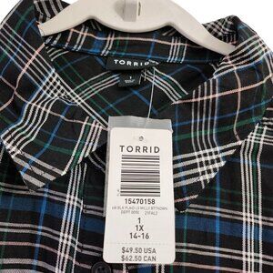 Torrid Top 1X Black Plaid Lizzie Rayon Twill Button-Up Long Sleeve Shirt NWT.