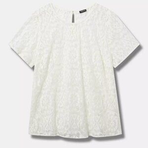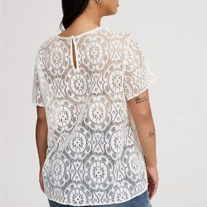Torrid Top 2X Crochet Lace Tee Shirt Abbey Crew Semi Sheer Boho Plus Size NWT