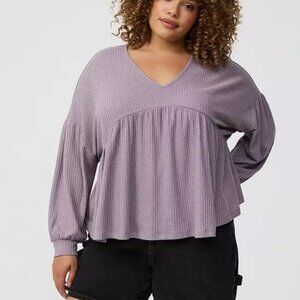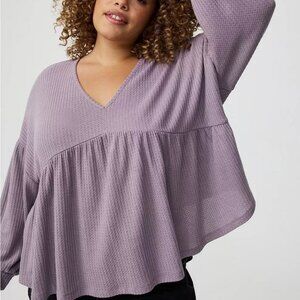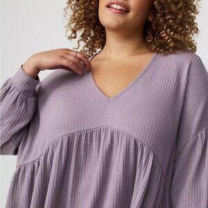 Torrid Top 2X Purple Waffle Knit Purple Relaxed Fit Long Sleeves Babydoll Plus