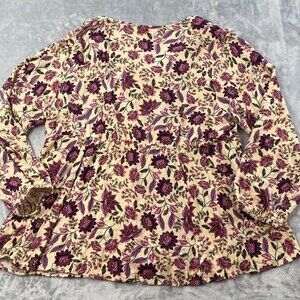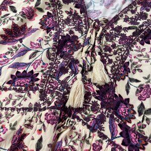Torrid Top 3 3X Cream Purple Lace Up Tassel Embroidery Babydoll Crepe Challis