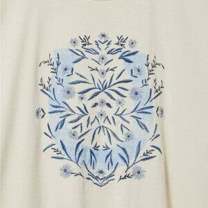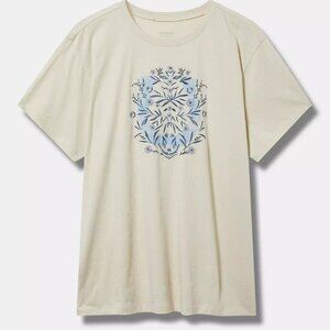 Torrid Top 3X Tee T-Shirt Tan Embroidered Floral Horseshoe Crew Relaxed Plus NWT