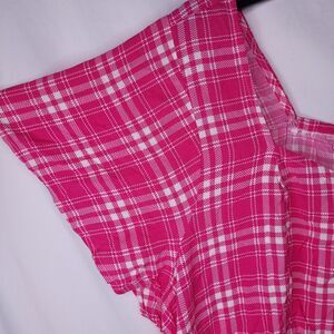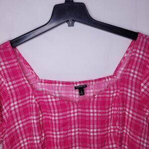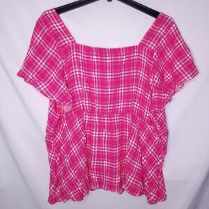 Torrid Top 4X Plaid Pink Peplum Challis Sweetheart Flutter Sleeve