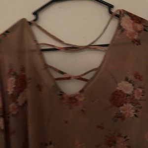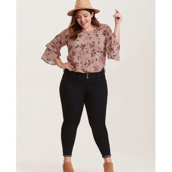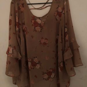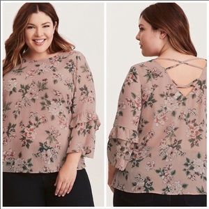 Torrid Pink Chiffon Floral Ruffle Sleeve Blouse Boho Style Crisscross back Ruffle bell sleeve Sheer blouse