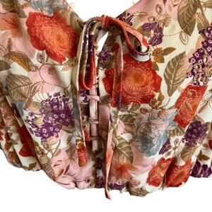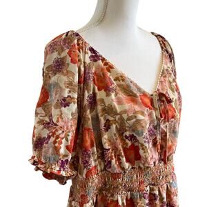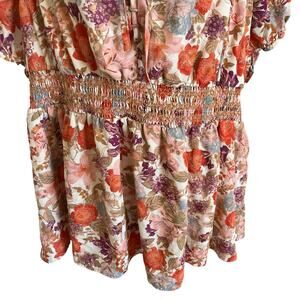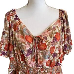 Torrid Top Blouse Georgette Shirt Size 3 3X 22/24 Peach Rust Floral Peasant Boho Bohemian Puff Sleeve Smocked