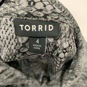 Torrid Top Blouse Woman 4X Snake Print Button Front Half Roll Tab Sleeve Light