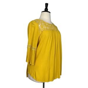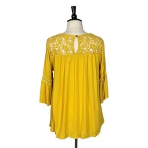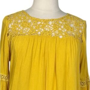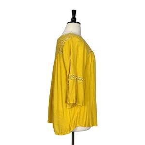 Torrid Top Crochet Lace Gauze Swing Bell Sleeve Mustard Yellow Women’s Size 3X