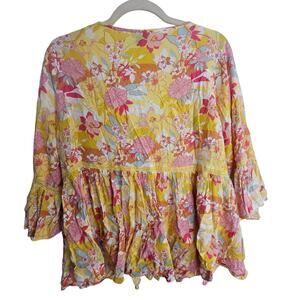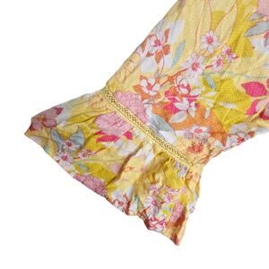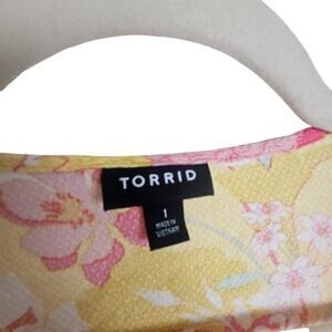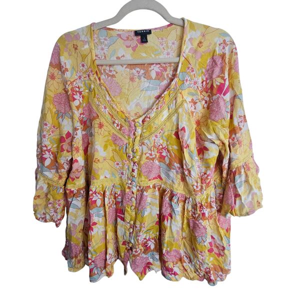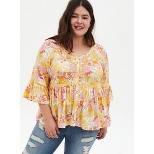 Torrid Top Floral Blouse Women 1X Yellow Bell Sleeve Blouse Embroidered Blouse