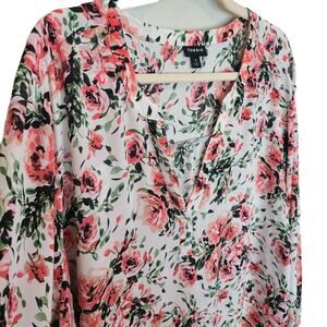 Torrid Top Hi Low Blouse Long Sleeve Blouse Womens 4X White Floral Top Georgette