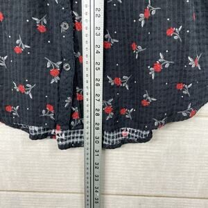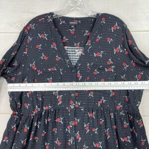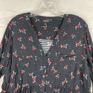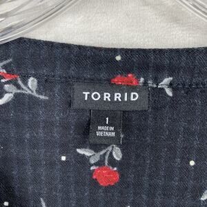 Torrid Top Plus Size 1X Black/Red Rose Floral Babydoll Tunic Button Up V Neck
