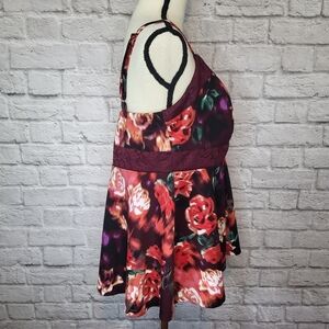 Torrid Top Red Purple Floral Adjustable Straps Lace Detail Peplum Tank Size 1X