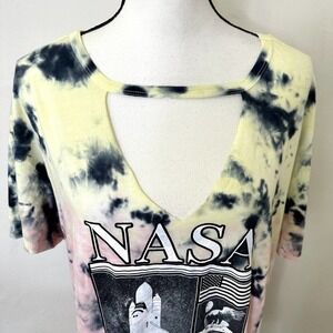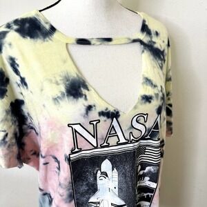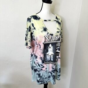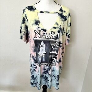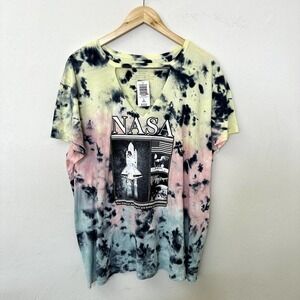 Torrid Top Short Sleeve Multicolor Tie dye Size 2x 18-20 Nasa Graphic Print