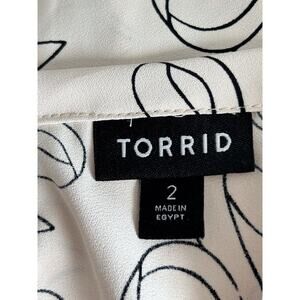 This Torrid blouse in size 2X features a flattering crew neck and flutter sleeves with pretty bow accents, adding a touch of charm to the classic design. Made of lightweight polyester georgette fabric with a rayon blend, this white top is perfect for summer and spring occasions like travel or casual outings. The blouse is machine washable for easy care and has a regular fit for comfort, making it a versatile and stylish addition to any wardrobe.