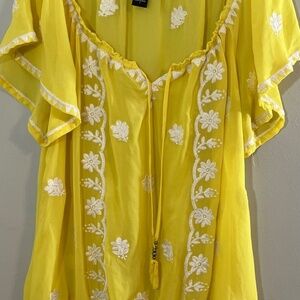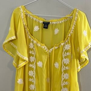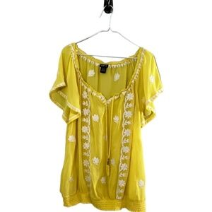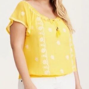 Torrid Top Women 14 Yellow Floral Embroidery Summer Boho Western Retro Feminine