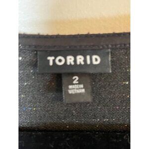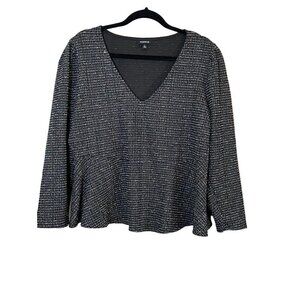 Torrid Top Women 2X Black V Neck Rainbow Boucle Pullover Metallic Peplum Neutral