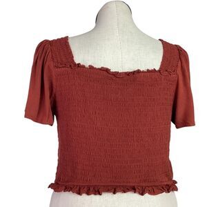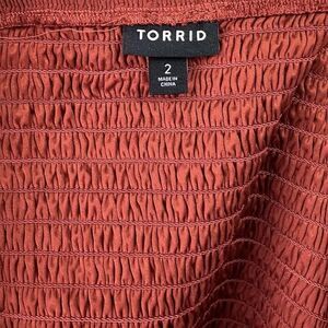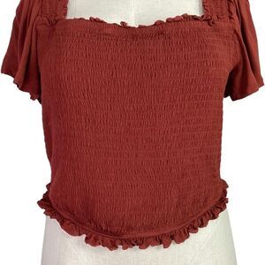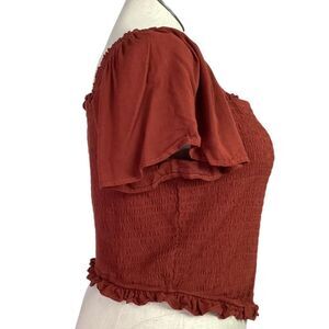 Torrid Top Women 2X Red Smocked Flutter Short Sleeve Ruffle Crop Blouse