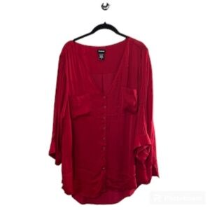 Torrid Top Women 2X Red Tunic Festive Neutral Holiday Office Christmas Retro 80s