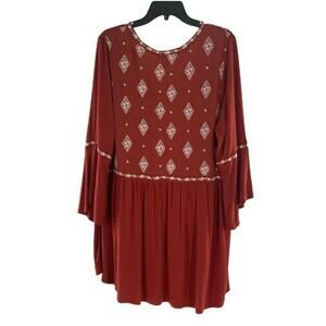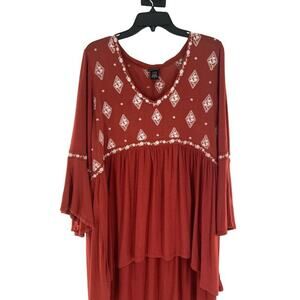 Torrid Top Women Size 2X Boho OrangeLong Bell Sleeves Embroidered Diamond V-Neck