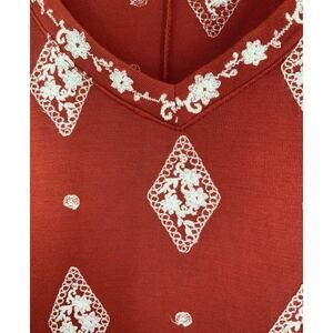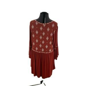 Torrid Top Women Size 2X Boho OrangeLong Bell Sleeves Embroidered Diamond V-Neck