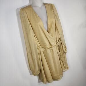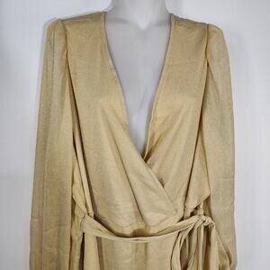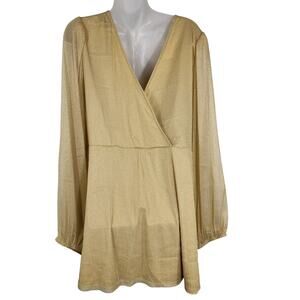 Torrid Top Women Size 5X 28 Gold Knit Glitter Lurex Surplice Peplum Puff Sleeve