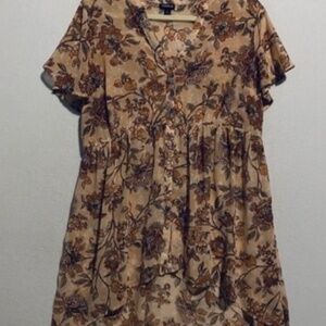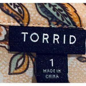 Torrid Top Womens 1X Orange Floral Chiffon Babydoll Sheer Hi Low Hem Boho