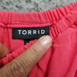 Torrid Top Womens 2X Hot Pink Off The Shoulder Ruffle Cropped Blouse *NWT*