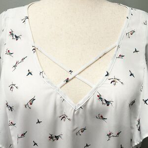 Torrid Top Women's 3 3X White Cottagecore Boho Beachy Birds Criss Cross Flutter