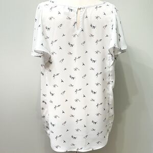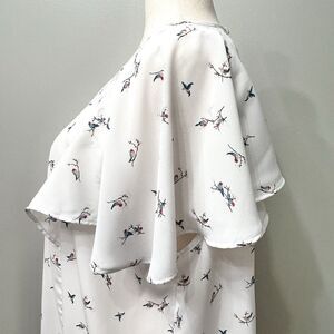 Torrid Top Women's 3 3X White Cottagecore Boho Beachy Birds Criss Cross V-Neck Flutter Sleeves