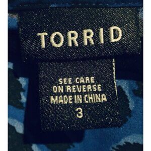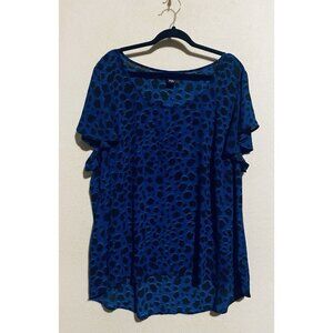 Torrid Top Womens 3X Blue Black Animal Print Scoop Neck Flutter Sleeve Boho Y2K
