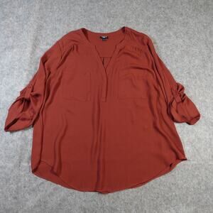 Torrid Top Womens 3X Harper Popover Roll Tab Sleeve Office Career Terracotta