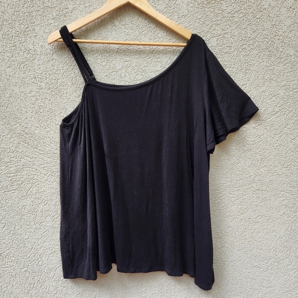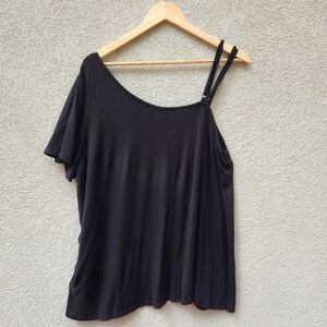 Torrid Top Womens 3X Plus Black Single Cold Shoulder Asymmetrical Rayon Stretch