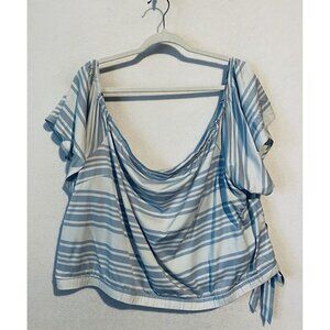 Torrid Top Womens 5X Blue White Striped Crop Off The Shoulder Beachy Boho