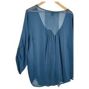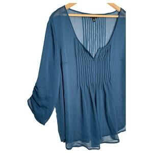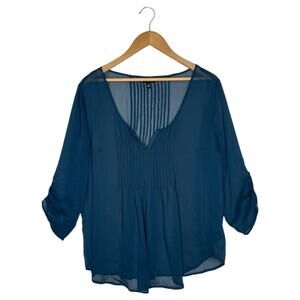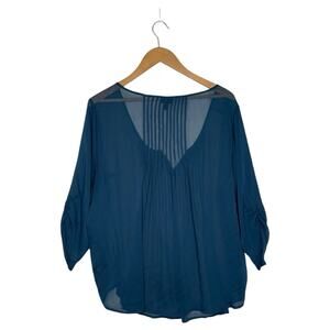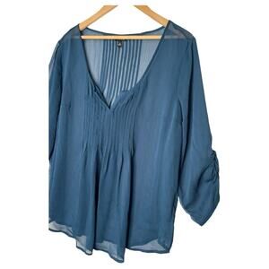 Torrid Top Women's Sheer Chiffon V Neck Pintuck 3/4 Ruched Sleeves Green