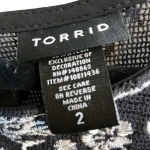 Torrid Top Womens Size 2 -2X Black White Embroidered Cold Shoulder Blouse