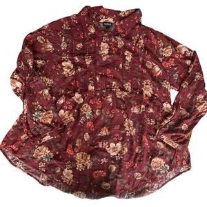 Torrid Top Womens Size 2X Burgundy Floral Professional Modest Work Church