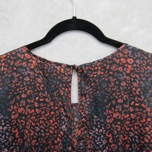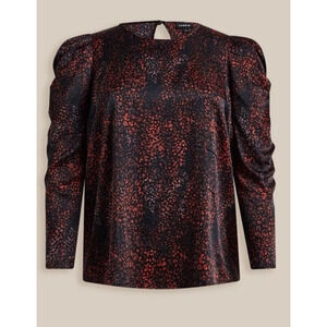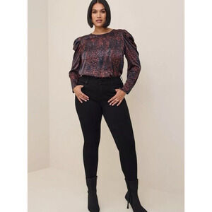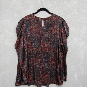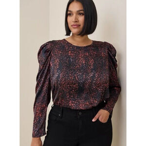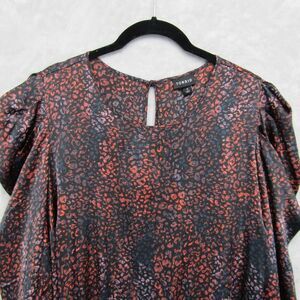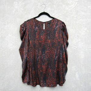 Torrid Top Womens Sz 0 XL Satin Animal Print Blouse Black Multicolor Puff Sleeve