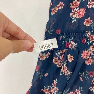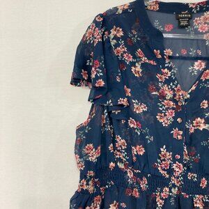 Torrid Top size 3X Navy Floral Sheer Flutter Sleeve V Neck Top Feminine Elegant