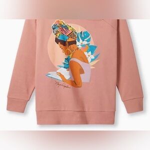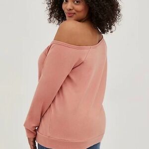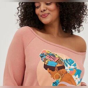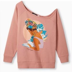 #Torridstrong Off-Shoulder Sweatshirt French Terry Maya Angelou Rose Pink, size 2 Cozy Fleece knit fabric: This essential fleece has a brushed warm interior and a lived-in, casual look.