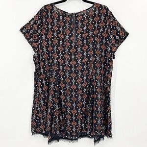 Torrid Tribal Geometric Print Fringe Hem Tunic Top, Women’s Plus Size 2X.