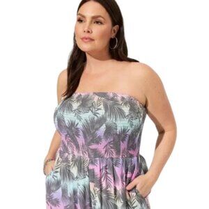 Torrid Tropical Midi Smocked Jumpsuit Size 2